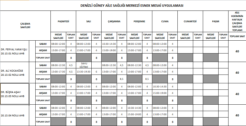 Esnek Mesai Tablosu